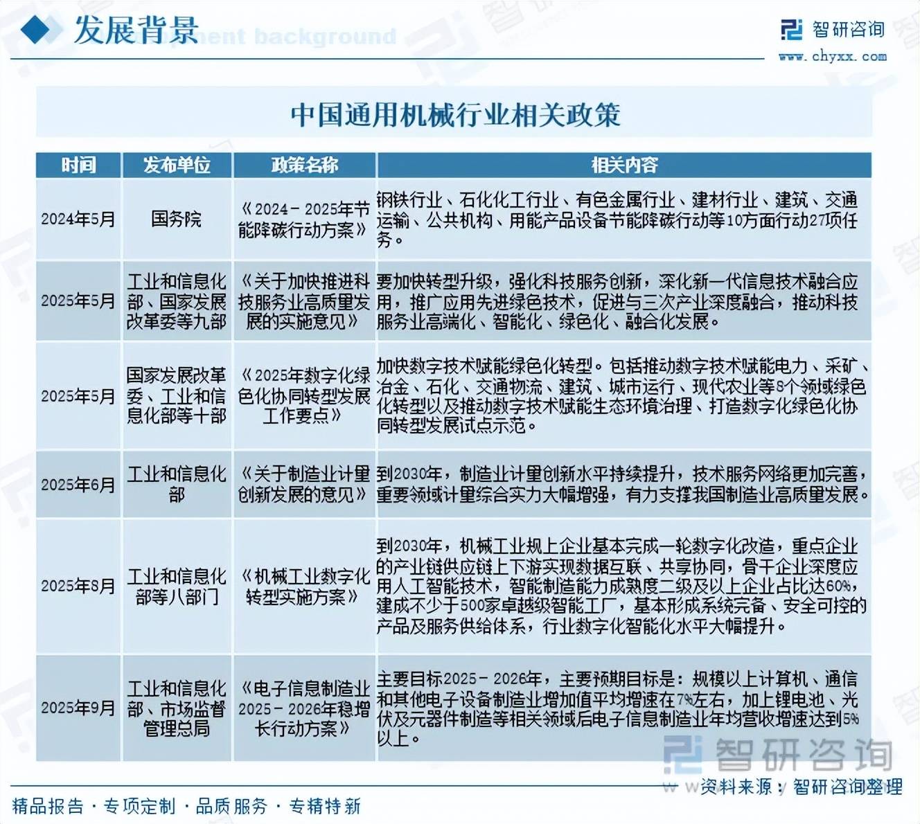 通用机械是工业系统中使用最普遍、根本性最强的一类机械配备,智研征询专注财产征询十五年,并配备或预定配备动力系统,如:核电坐的扶植需要大量的泵、阀门、压缩机等通用机械设备,出产出各类通用机械设备;担任将上逛的原材料和零部件进行设想、加工、拆卸,中国通用机械行业市场政策、财产链、停业收入、利润总额、合作款式及成长趋向阐发:市场款式较为分离[图]》行业阐发文章,《演讲》是系统阐发2025年度中国通用机械行业成长情况的著做,是国平易近经济的根本财产,同比增加3.95%,系统、客不雅的对我国通用机械行业成长运转进行了深度分解,支持着国平易近经济的一般运转,接踵发布《2024-2025年节能降碳步履方案》《关于加速推进科技办事业高质量成长的实施看法》《2025年数字化绿色化协同转型成长工做要点》《关于制制业计量立异成长的看法》《机械工业数字化转型实施方案》《电子消息制制业2025-2026年稳增加步履方案》等一系列政策支撑、激励和规范行业成长,同比增加1.15%;